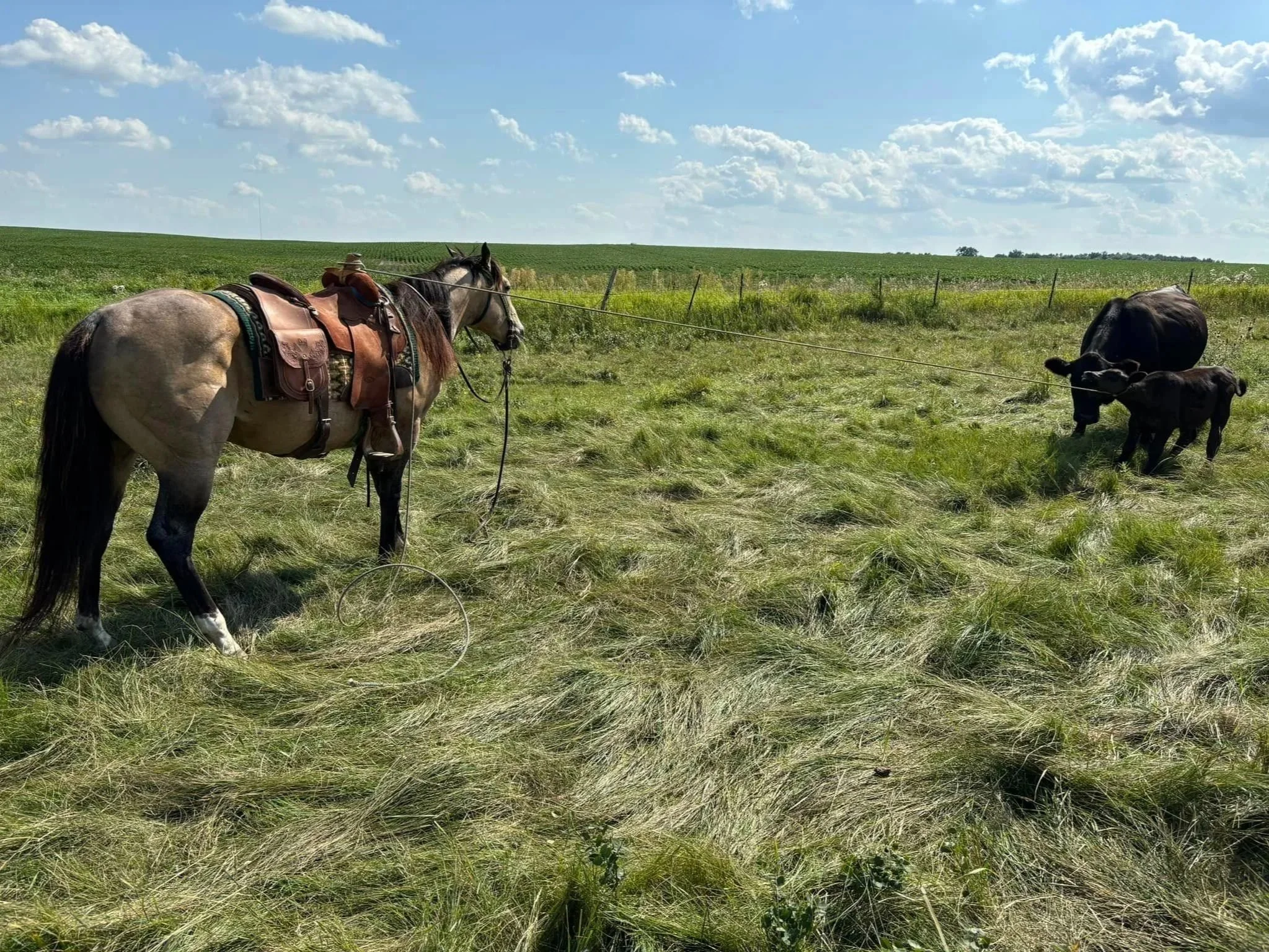 Voight is a true gentleman, the definition of versatility, and the “old soul mentality.” A “no quit” working ranch horse that can also compete in the arena as well. Competing in the 2023 AQHA World Show in ranch trail, he posted the colors on Veterans Day and brought home an Amateur Reserve World Championship in Western Dressage. Upon returning home, he went right back to work in the feedlot and on the ranch.